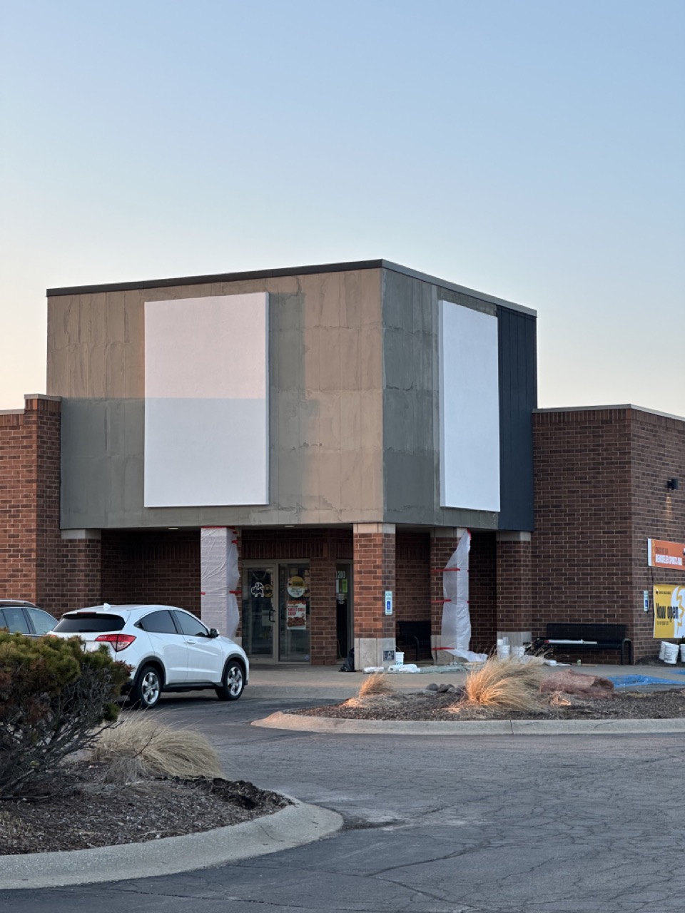 - Patch exiting E.I.F.S. and furnish and apply new base, mesh and finish coats to existing E.I.F.S. at areas where existing E.I.F.S./signage has been removed as necessary. Approximately 620 S.F. of existing E.I.F.S. to be refinished.